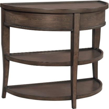 Introducing the aspenhome® Blakely End Table – a unique piece of furniture! The look is achieved through the stunning sable brown finish and sleek semi-circle design, which adds a touch of sophistication to any space. Equipped with two bottom shelves, it offers ample room to display your favorite décor pieces or stow away essentials.Read More