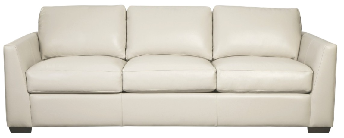This modern leather sofa features architectural shaping and low, deep seating, designed to be both comfortable and on-trend. It's generous scale and blend down coil cushioning provide plush, seating for the whole family. French seaming, semi-attached box border back pillows, and low block legs.Read More