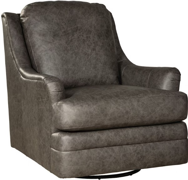 Featuring our Blend Down Coil seat cushion, this beautiful leather swivel glider is truly one of the most comfortable chairs you will ever sit in. It features a tall back, subtle wing shape, and English arms. Perfectly balanced, and engineered for ultimate comfort, you will love this chair for years to come.Read More