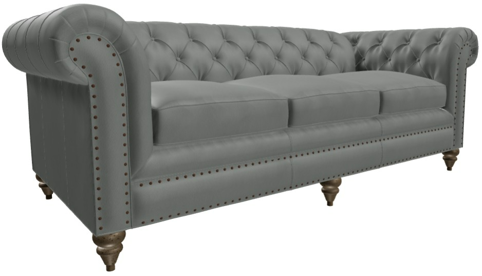 Casual luxury, European styling, and vintage touches meld together to bring a modern update to this classic leather Chesterfield sofa. It features handcrafted elements like the tall turned legs and nail head trim around the arm panels and front rail.Read More