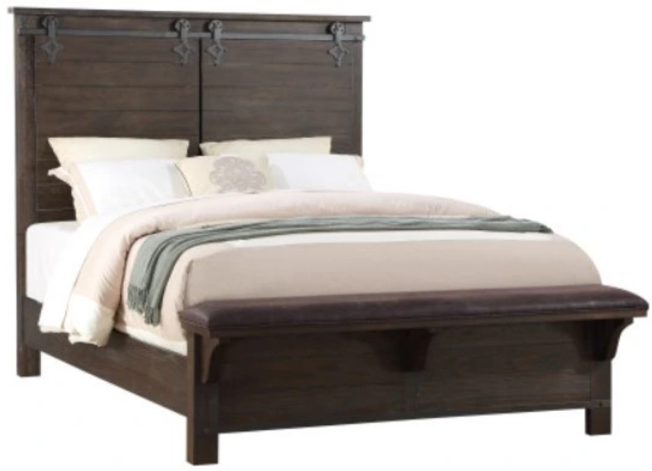 Farmhouse styling is enhanced with the Newton bedroom collection. Barndoor slides and metal accents are eye-catching features of this solid hardwood collection. A distressed finish in a deep cocoa brown completes the rustic look—perfect for transforming your master suite!Read More