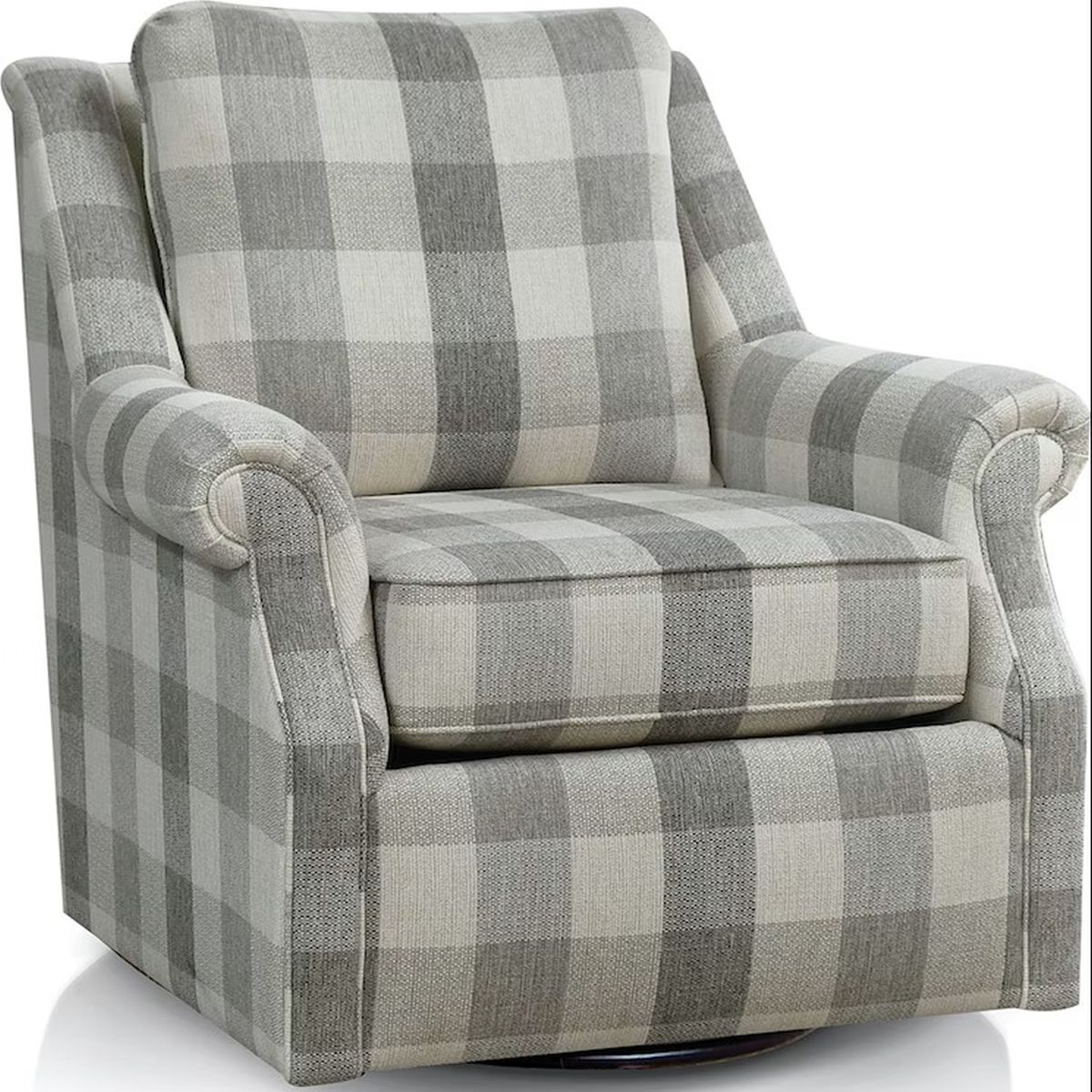 England's Annie swivel gliding chair has an undoubtedly sophisticated flair. Its recessed rolled arm, optional nailhead trim, and comfortable seat make it a welcome addition to any home. Choose from any of our solid, patterned, or matched stripe and plaid fabrics to make it all your own!Read More