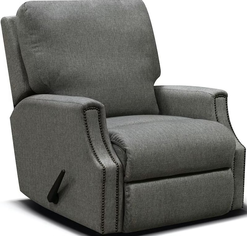Kick back and relax in the 1650 recliner. Its stylish cutaway arm is accented with an optional antique brass nailhead trim while its deeply padded arm and back cradle you in comfort. Available as a minimum proximity, rocking, and swivel rocking recliner in both leather and fabric.Read More