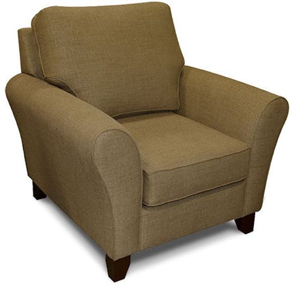 Paxton Chair features flared arms and exposed dark wooden legs.Read More