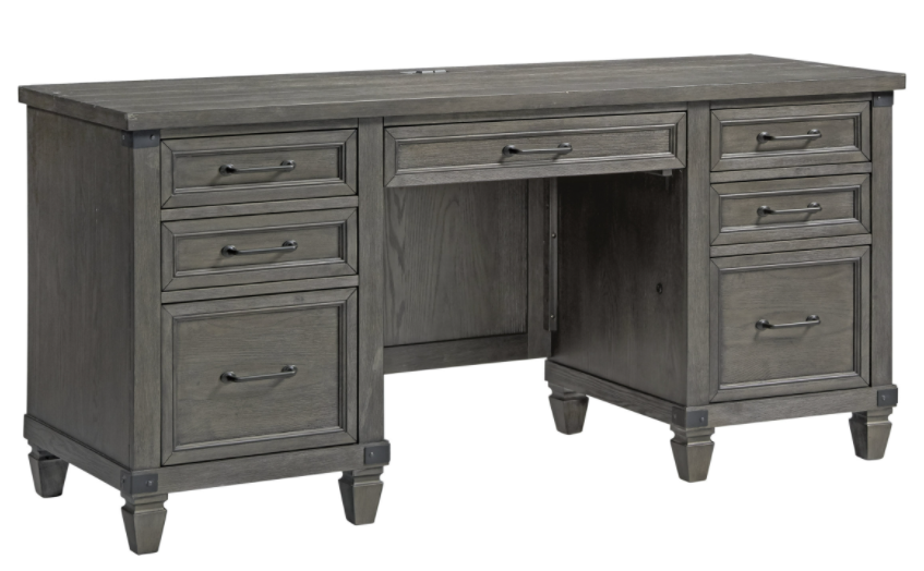 The Foundry Home Office Collection is offered in a wire-brushed pewter finish for a natural, rustic appeal. Constructed from Oak veneer and select hardwood, with metal accent plates throughout.Read More