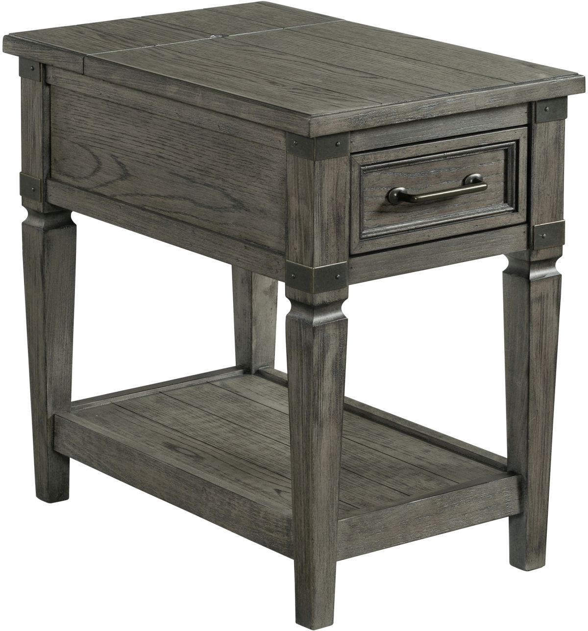 The Foundry Living Collection is constructed from oak veneer and select hardwoods and has a wire-brushed pewter finish. Two sizes of stands and four accent tables are available to meet your exact living room needs. Black metal accents combined with its stunning rustic finish gives this group an industrial look that will also add warmth to living spaces of all sizes.Read More