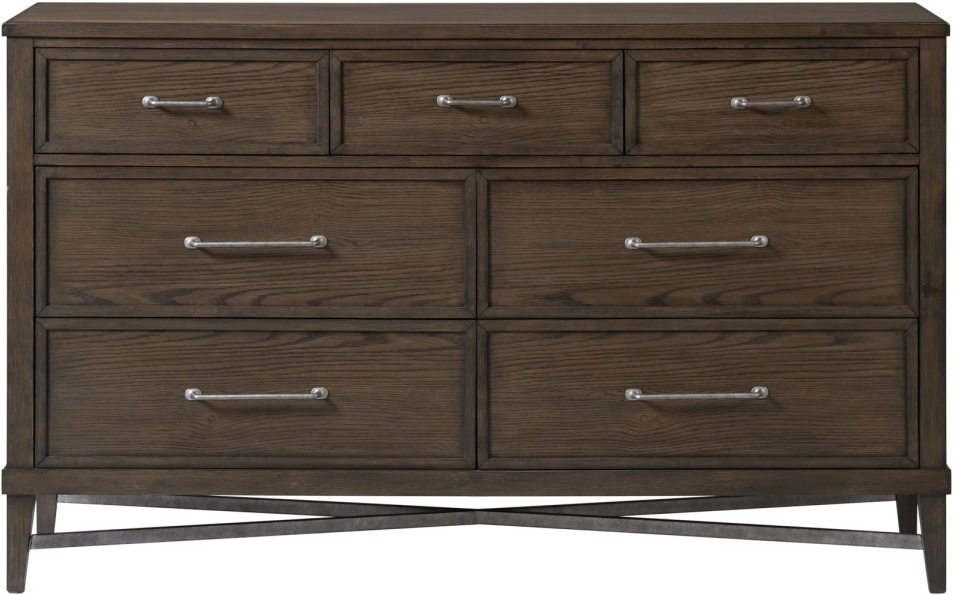 The Preston Bedroom Collection is constructed with Oak Veneer and Select Hardwoods. This collection is offered in a Weathered Vintage Oak Finish that is lightly wire-brushed and is complimented by the antiqued bronze hardware on all case-pieces.Read More