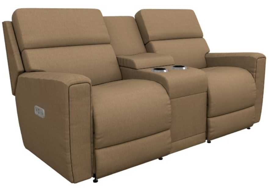 The Apollo power reclining loveseat with headrest, lumbar and console has a modern aura with padded track arms and head-to-toe power-adjustable comfort. Recline supportive backs, kick back in bucket seats, grab your drink from the console and relax!Read More