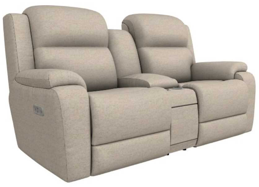 The La-Z-Boy® Dorian power reclining loveseat with headrest and console offers comfort and convenience in a stylish package. Upholstered in soft, durable fabric, it features power recliners, plush cushions, and a center console with storage and cup holders. Perfect for relaxing or entertaining, it blends functionality with timeless design.Read More