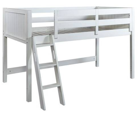 Crafted of pine solids this piece features a slat rail, planked design on headboard and footboard, and ladder attached. Kids can enjoy the open space underneath, providing extra play space perfect for a fort!