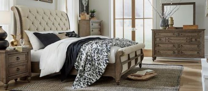 When details matter, choose the Americana Farmhouse king sleigh bed, dresser, mirror, chest, and nightstand. Americana Farmhouse evokes a style unconstrained and intended to be personal with an authentic craftsman’s flair and artistry.Read More
