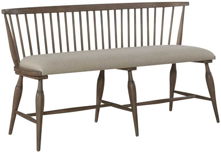 Get cozy with the Americana Farmhouse upholstered seat Windsor bench. Crafted with excellence using rubberwood solids, this bench features a dusty taupe finish. The curved Windsor back and padded upholstered seat in stone buff linen add for comfort. The splayed turned legs feature nylon chair glides to protect your flooring.Read More