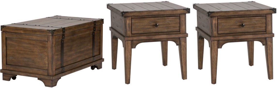 3-piece occasional set includes storage trunk and 2 end tables