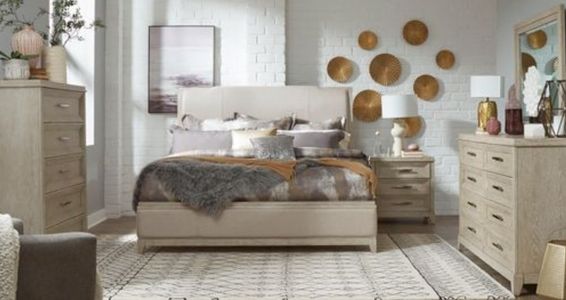 Includes King Upholstered Bed, Dresser & Mirror, Chest, Nightstand