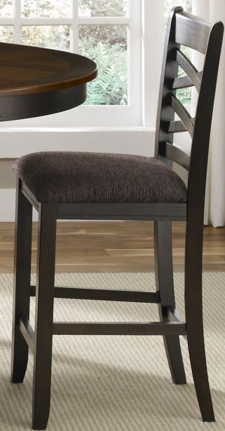 Liberty Bistro II Double X Back Counter Chair has a Honey & Espresso finish that is made from rubberwood solids and walnut veneers. The bar stool has a intersecting X back style with a chenille upholstery seat cushion. This chair pairs great with the gathering table for a complete set dining room.
