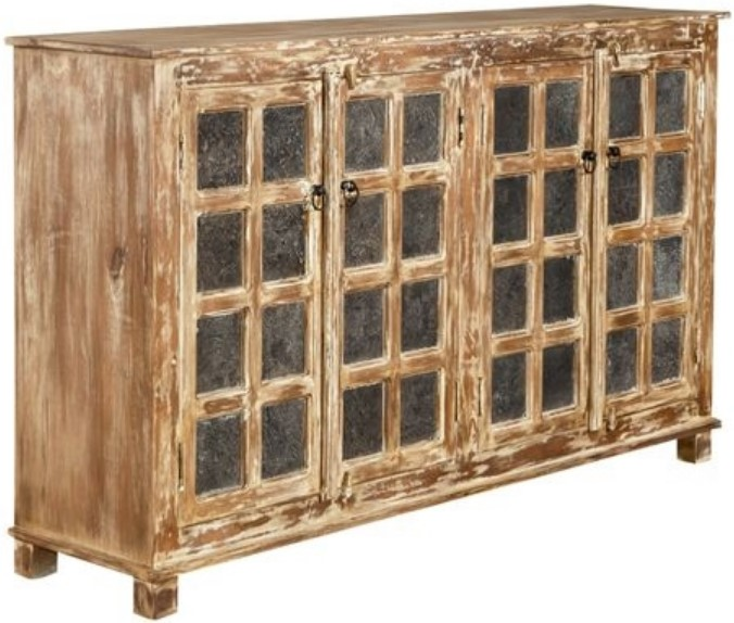 Transform your space with the Danbury Mills four door accent cabinet. Crafted of mango solids, this piece features an antique sienna finish, appealing replicated wooden textile printing block inserts, and two shelves for additional storage. This rustic cabinet would make a wonderful addition to any eclectic home.Read More