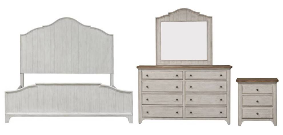 Settle in for cozy rest surrounded by the attractive Farmhouse Reimagined collection from Liberty Furniture. The rustic finish accentuated by romantic architecture and detailed craftsmanship form an enchanted sleep space full of special character. Create the setup of your dreams with ample storage options that help you organize and round out your bedroom’s presentation in chic fashion.