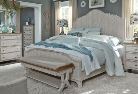 Warm and cozy. Bring beauty indoors with the Farmhouse Reimagined king panel bed, dresser, mirror, chest, and nightstand. Farmhouse Reimagined offers cottage styles that you love in a heavily distressed finish that will work from the beach to the mountains to an industrial loft.Read More