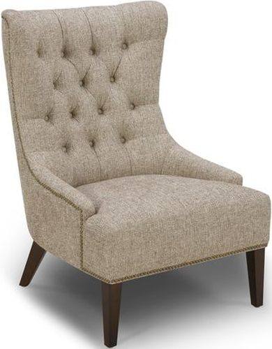 Create the decor of your dreams with the Garrison upholstered accent chair. The Garrison features a high shaped back with sloped arms that cradles your body, accented with Antique Brass nail heads and button tufting.Read More