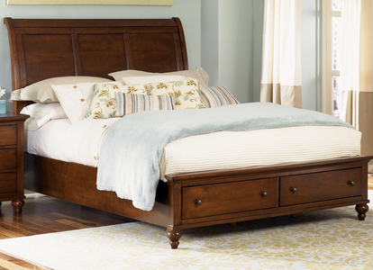 Hamilton is appealing to a mixture of personalities. It is easy to live with from the light scaling in the crown undertop moldings to the turned bun feet. The sleigh bed features onlay moldings to the headboard and footboard for added dimension