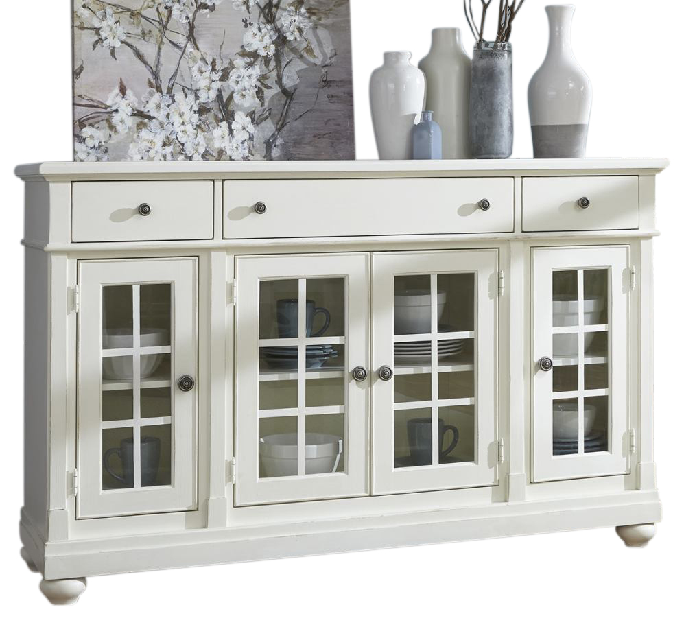 | Sideboards And Buffet Features | Adjustable Shelves, Felt-Lined Drawer, Glass Doors |