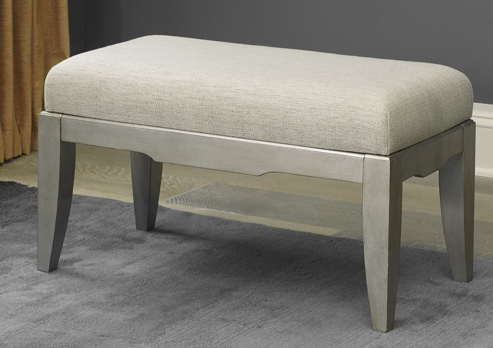 Crafted of poplar solids, this piece features a platinum finish. Sit in comfort with the upholstered padded seat in a pearl platinum. Reinvent your style with the Montage Collection.