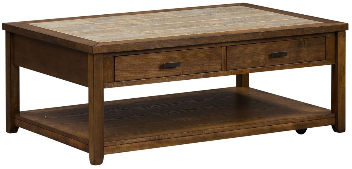 Captivating and unique, the Mesa Valley collection brings the heart of the Arizona desert into your home. The tobacco finish, antique brass hardware, and ceramic tile insert combine casual sentiments with rustic vibes to create a charming space. The shelves and drawers keep your essentials out of the way so you can have the clutter-free home of your dreams with this collection from Liberty Furniture.
