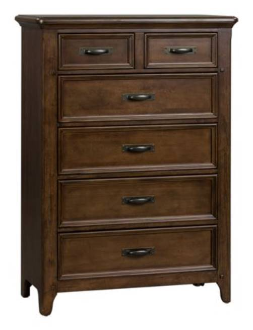 The Saddlebrook chest offers a transitional style, creating a nice balance between tradition and todays modern trends. Crafted with rubberwood solids and birch veneers, this piece features 6 drawers accented by antiqued brass bar pulls on metal plate hardware, bottom case dust proofing and felt lined top drawers.Read More