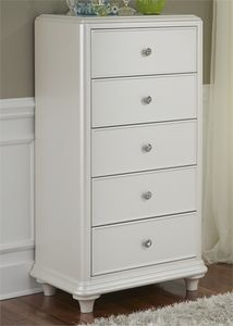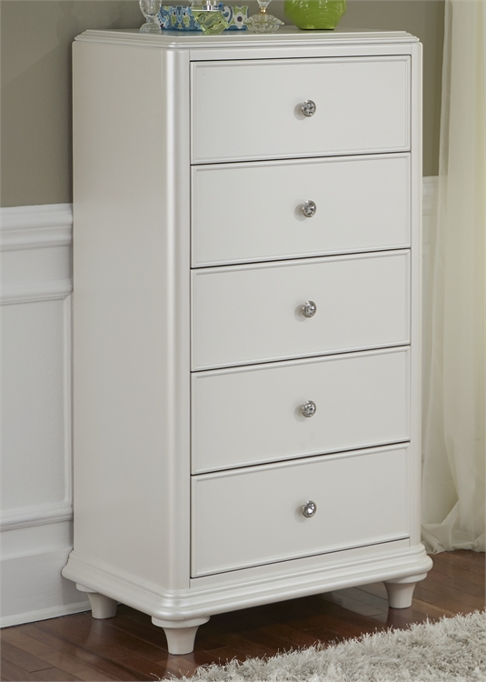 Brimming with refreshing tones, the Stardust collection creates a majestic retreat in your kid’s bedroom. The iridescent white finish, faux-crystal accents, and soft curves provide refreshing charm your little starlet will adore. Whether waking, playing, or dreaming, your mini royal will love this Liberty Furniture collection.