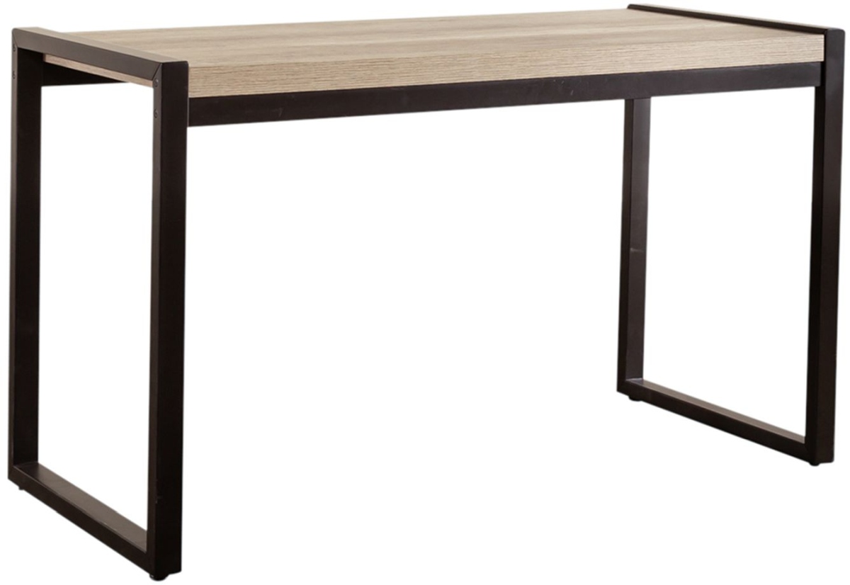Move away from the traditional and bring in a clean and simple look with the Sun Valley writing desk. Crafted of a rubberwood solid frame and melamine, this piece features a sandstone finish. This desk has a floating top design with open ends that are finished to look like a dark pewter metal. The melamine provides a surface protection against scratches and wear and tear. Clean lines and small scale create the perfect balance for condo’s, lofts, or second bedrooms.Read More