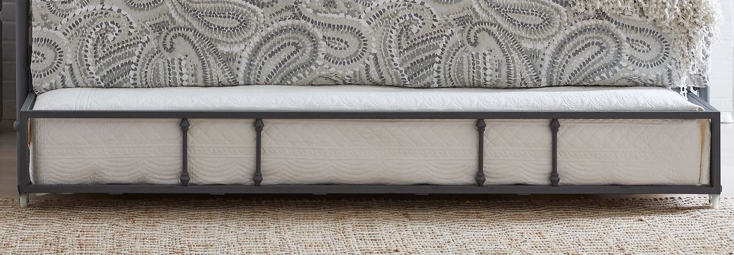 Classic vintage style metal trundle finished in distressed Grey. The turned post give that old-world feel and perfect for sleep overs. Pair with the daybed to make a complete bed.Read More