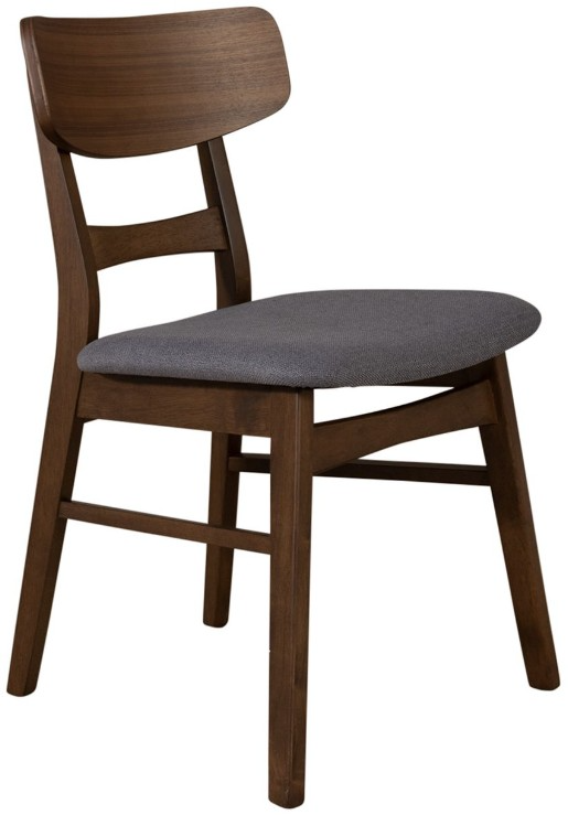 Sit in comfort with the Space Savers panel back side chair. Crafted of rubberwood solids and walnut veneers, this piece features a satin walnut finish, grey linen upholstery, a shaped cap rail, nylon chair glides to protect your flooring, and is anchored by beautifully splayed legs.Read More