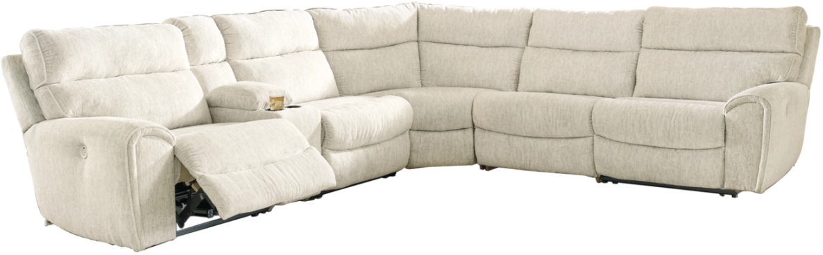 Includes 6 pieces: left-arm facing power recliner, armless recliner, armless chair, console with storage, wedge and right-arm facing power recliner