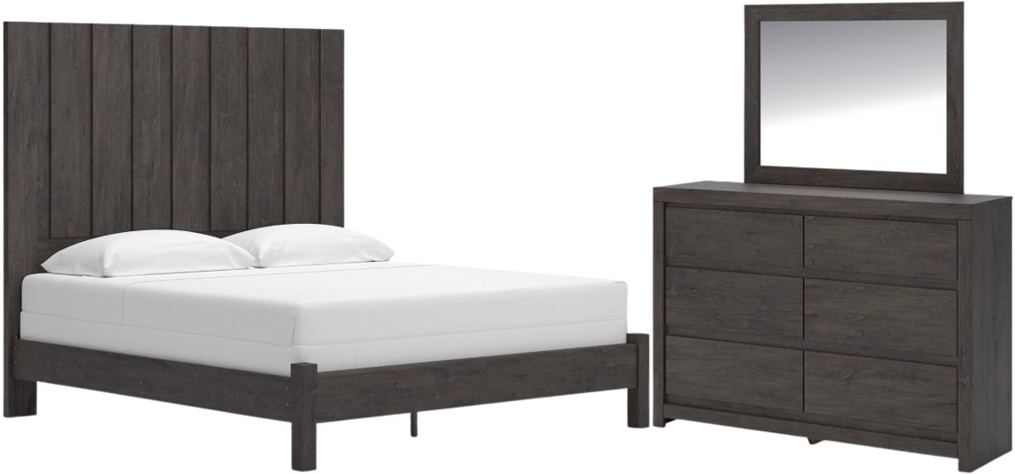 Find serene simplicity in the clean lines and dark neutral tones of this queen panel bed. It’s a sincere approach to modern elegance, giving you high style at a great value. Vertical planks decorate the generously scaled headboard to give the illusion of additional height, polishing off the piece in grand fashion.