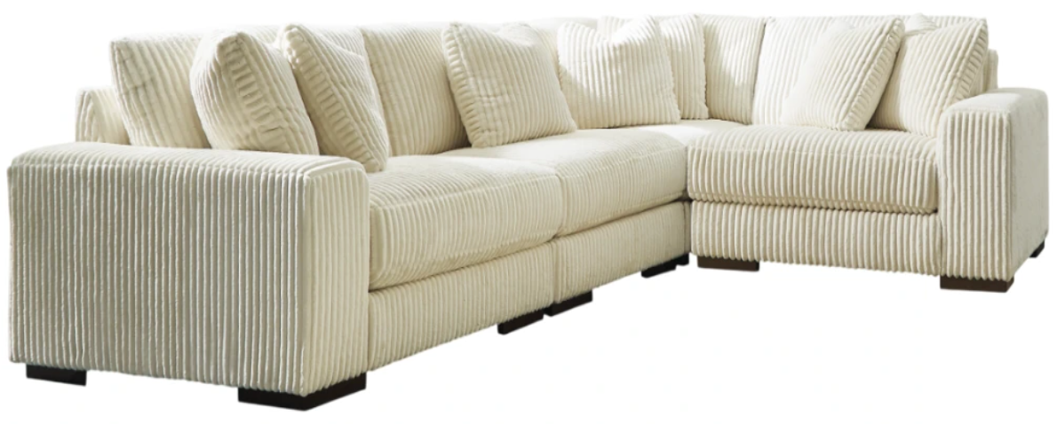 Plush and posh. Showcase your eye for on-trend texture with the statement-making cord upholstery of this sectional. Its stunningly soft fabric entices in an ivory hue, complementing contemporary color palettes. Sink into the cushions and plan to stay a while—this cozy living room centerpiece highlights your high-end approach to comfort and style.Read More