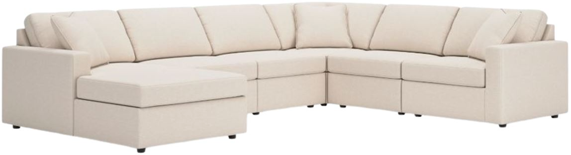 Includes 6 Modular Pieces: Left-arm facing corner chaise, 3 armless chairs, wedge and right-arm facing corner chair