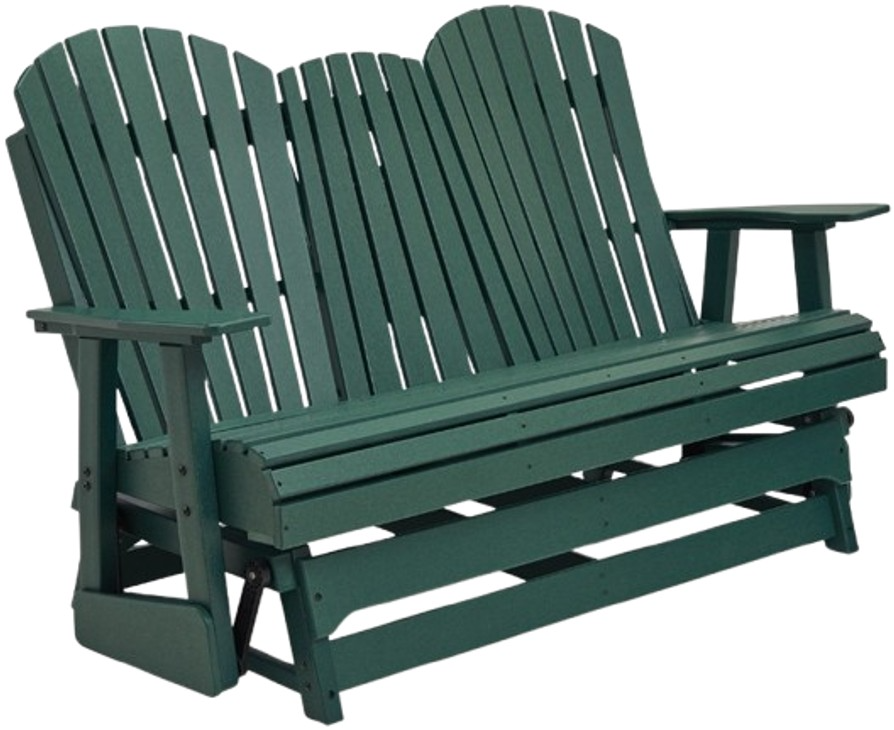 Drift away from everyday worries and into outdoor bliss with this glider loveseat. Dressed in a refreshing green hue, the Adirondack-inspired design has a classic feel. It weathers sunny summer days and cozy winter nights with durable MEGA-TUFF® HDPE material. A drop-down console with integrated cup holders keeps refreshments and snacks within easy reach.Read More